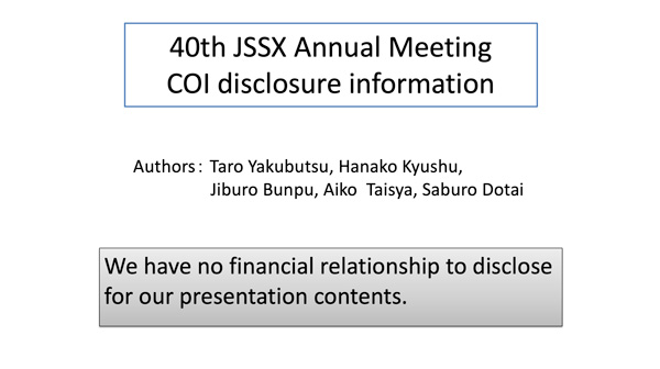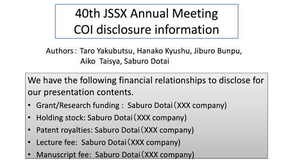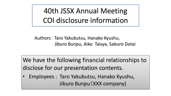一般社団法人・日本薬物動態学会の細則に基づき、以下の基準を超える場合には、利益相反の状況を、年会発表時に提示してください。なお、自己申告および申告された内容については、申告者本人が責任を持つものとします。